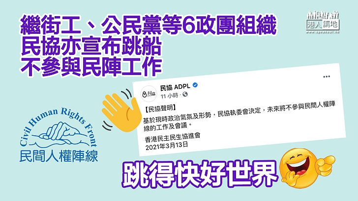 Jun 20, 2021 · 民陣將不會申請今年7月1日的遊行。 民陣成員團體之一的社民連、主席黃浩銘說,自民陣召集人陳皓桓早前入獄後,民陣秘書處已無運作,以民陣. Jun 24, 2021 · 民陣臨時召集人鍾松輝早前表示,不會申請七一遊行。天水連線、守護大嶼聯盟及社民連3個團體,今日(24日)稱將於明日(25日)向警方申請舉辦七一遊行,承接民陣17年來的傳統。3個團體聯合表示,今年七一遊行的主題是「堅守民間社會、抵抗政治打壓、釋放所有政治犯」。 Aug 03, 2021 · 民陣自前年6月起舉辦的多次遊行,期間或結束後都出現不同暴力事件。資料圖片 多次以遊行為名,藉機搞事的"民陣"今年偃旗息鼓。"民陣"臨時召集人鍾松輝表示,"民陣"今年7月1日將不會再舉辦遊行。 Jun 22, 2021 · 6月20日,民陣臨時召集人鍾松輝向媒體表示,今年將不會申請舉辦七月一日的遊行,他直言因中共病毒(武漢肺炎)「限聚令」及民陣被警方定性為. Jun 20, 2021 · 民陣近來被傳或遭取締,早在四月下旬接獲警方去函指曾於2006年7月申請註冊為社團,獲批准及接納,至同年9月向社團事務主任申請取消註冊後,有. Jun 20, 2021 · 以「新巴職工會」成員團體身份參與民陣活動多年,曾兩度出任民陣召集人的鍾松輝,今日接受《蘋果》查詢時表示,民陣召集人陳皓桓5月底因前年10.1遊行案被判入獄18個月前,曾召開民陣會議,會上成員團體通過由他出任「臨時召集人」,主要負責看守角色,包括按民陣章程,於今年8月底前更新. Jun 25, 2021 · 民陣18年來首次不申辦七一遊行. May 28, 2021 · 前年十一國慶日遊行案,10名民主派人士分別承認組織未經批准集結等罪,民陣召集人陳皓桓等8人各被判囚14至18個月,單仲偕及蔡耀昌被判緩刑2年。 陳皓桓的個人社交專頁,上載他的公開信,指在反修例運動期間,民陣與社會為爭取民主、自由、人權、公義全力以赴,令全世界看到香港,並正式. Jun 21, 2021 · 涉嫌违反《社团条例》规定的"民间人权阵线"("民阵"),其临时招集人向传媒确认,该组织今年一定不会举办"七一游行",主要原因是警方已经将"民阵"定义为无注册社团,根本难以合法申请举办游行,加上还有"限聚令",他个人认为,自2002年成立的"民阵"已经完成历史任务云云。